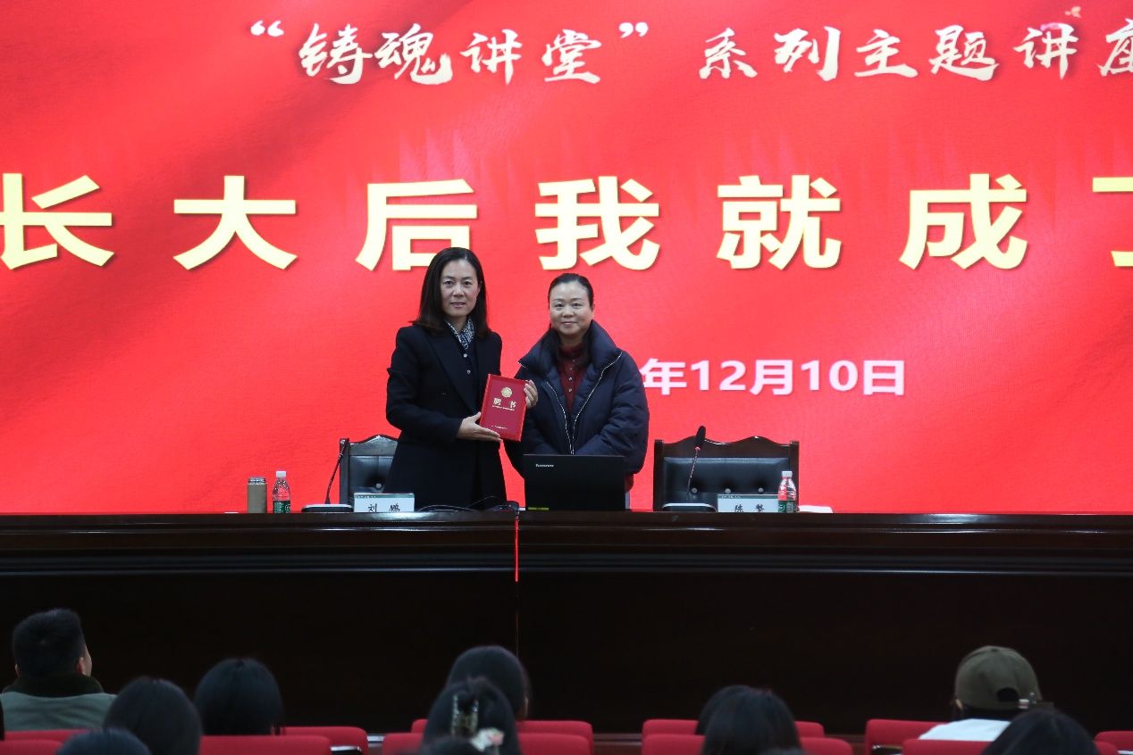 报告结束后,陈繁为刘鹏颁发校外辅导员聘书。