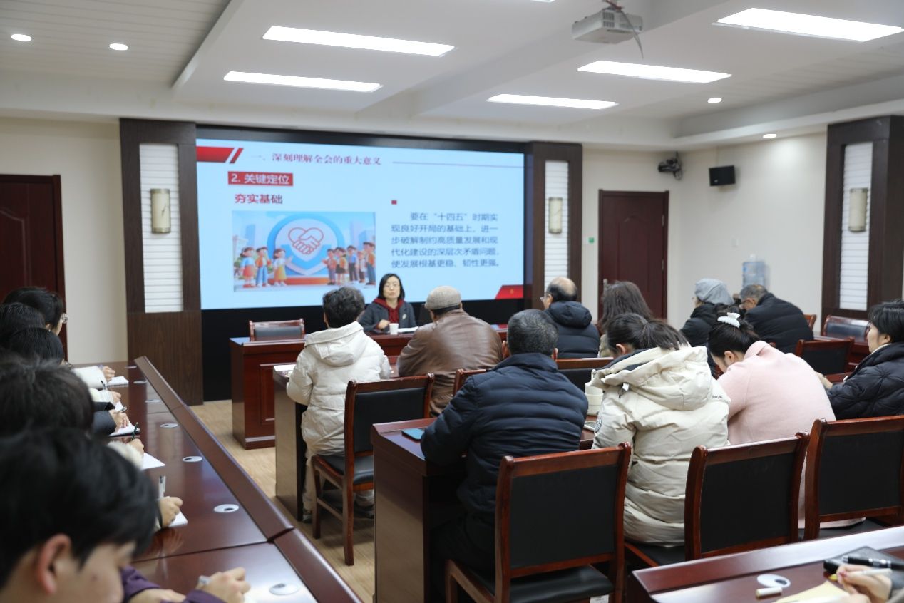 12月12日下午,学校党委委员、关工委秘书长孙力面向学校关工委成员进行二十届四中全会精神宣讲。学校关工委常务副主任马玲、副秘书长蒋越、常务副秘书长郭渝、各二级学院关工委副主任、关工委老同志代表、辅导员代表、关工委学生委员代表、学院学生代表参加了活动,宣讲活动在洞山校区208会议室进行。