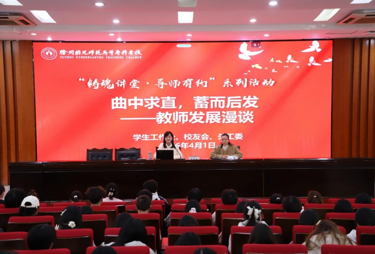 4月2日下午,我校在碧螺校区学术报告厅举行铸魂讲堂专题讲座。讲座邀请我校1996级学前教育专业校友、徐州市苏堤路小学语文教师拾景玉作主讲嘉宾。学生工作处相关人员、各学院学生代表参加了此次活动,活动由学生工作处处长陈繁主持。